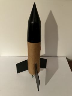 Ich habe hier noch eine sogenannte "Klorollenrakete" mit einem Körperrohr aus dem Kern einer Klorolle, die sogar schon auf dem Sprengplatz der BAM geflogen ist: