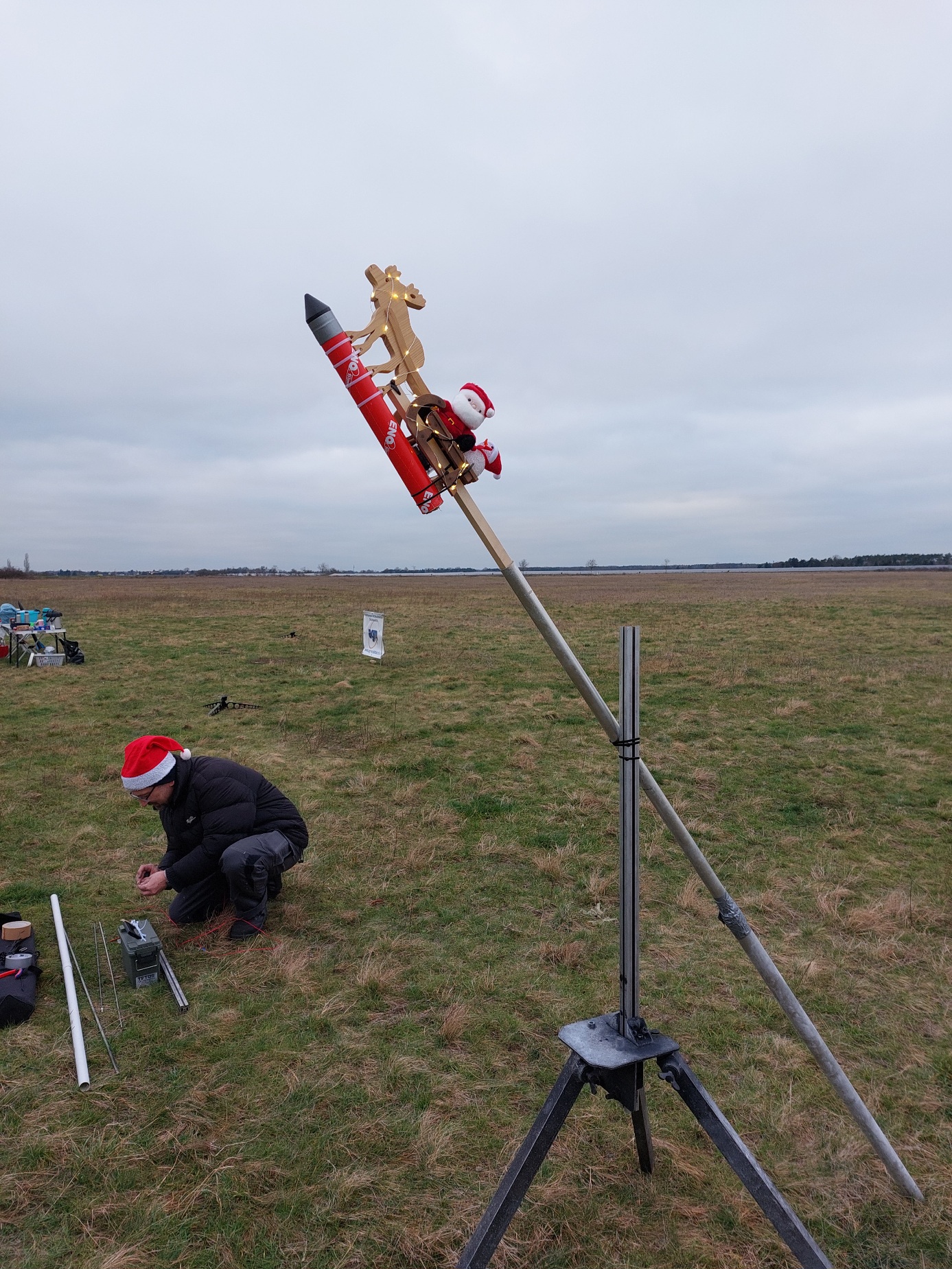Von mir auch noch ein paar Bilder, wie immer hab ich natürlich zu wenige gemacht. Danke nochmal für die Organisation und die sehr gute Versorgung mit dem Catering. Am "Buffet" und Grill kommen alle zusammen. Raketen mit Weihnachtsmützen fliegen gut, aber die Mütze kostetete mehr Höhe als erwartet wodurch die Verzögerung der Ausstoßladung zu lang war, aber gerade noch rechtzeitig vor der Landung den Fallschirm auswarf. Andreas bereitet seinen Schlitten vor, der Flug war das Highlight des Tages - gut gestartet und links abgebogen fast parallel den Schotterweg entlang. Gruß Benni