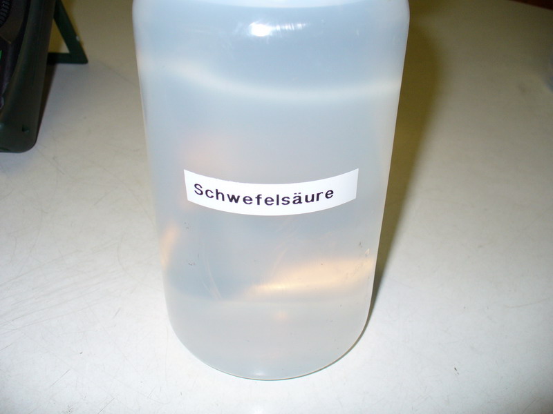 Der erste Schritt ist eigendlich auch der gefährlichste, zumindest wenn man nicht weiss was man tut. Das anmischen der Säure.