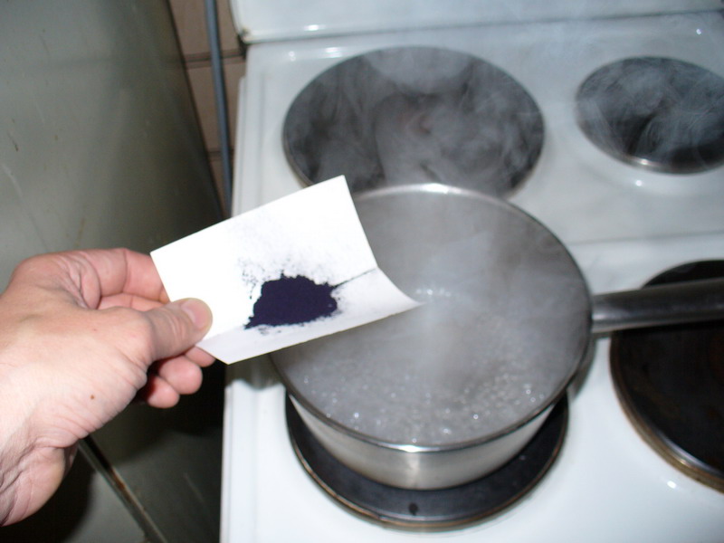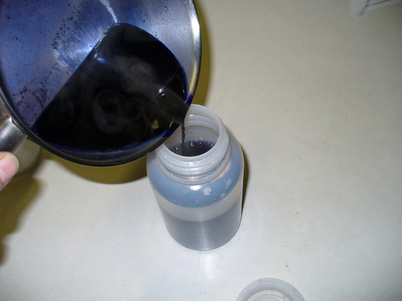 Nach dem aufkochen, geht’s dann wieder zurück in den eigendlichen Farbbehälter (mit dem Rest des Wassers)
