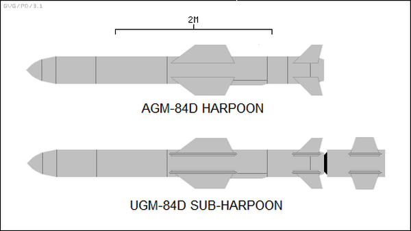Gebaut wird der Apparat salopp gesagt in zwei Versionen, einmal die kurze Air-launched Version mit nur acht Fins, und eigentlich heißt nur die dann AGM-84.