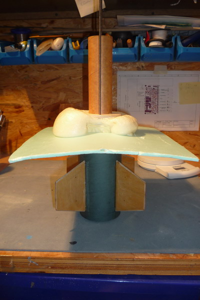 Hier ebenfalls schon egalisiert und geschliffen. Wiegt etwa 270g. Bekommt aber wohl noch eine Bohrung und wird vermutlich mit etwa 80-100g Blei aufgelastet werden, je nachdem wie schwer die Elektroniksektion wird.
