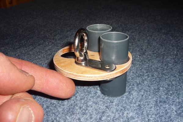 Der Augbolzen ist wieder VA mit M6 Bolzen. Das Loch ist die 13mm Öffnung der Schleppkupplung.
