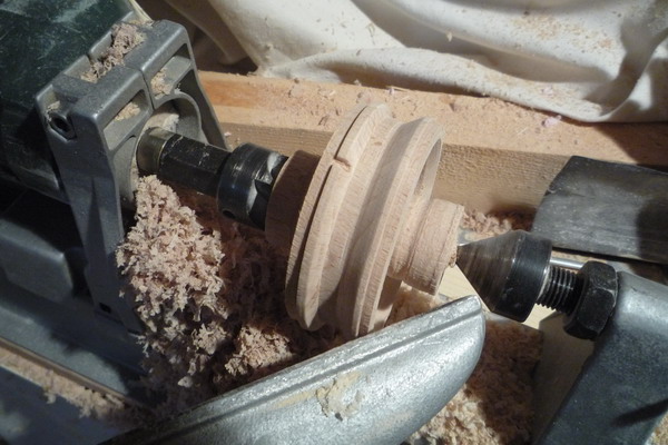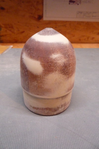 Ebenfalls auf der Drechselbank hab ich aus Mahagoni eine massive Spitze hergestellt.