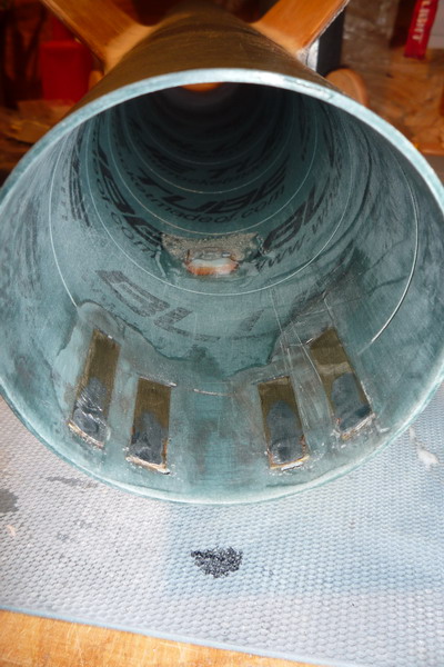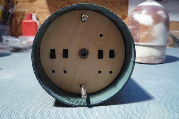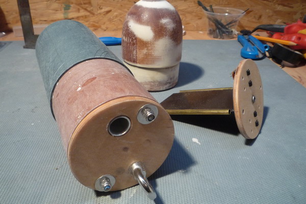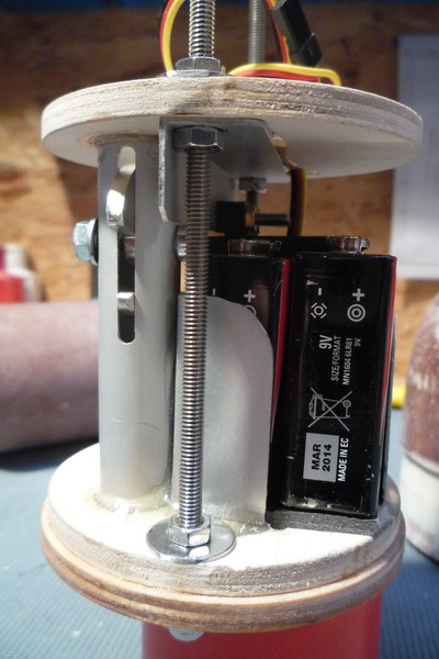 In die Spitze hab ich eine M5 VA-Schraube eingeklebt, so kann man auf der Rampe zu guter letzt simpel von oben die Bergeelektroniken scharfschalten, Deckel draufdrehen und gut.