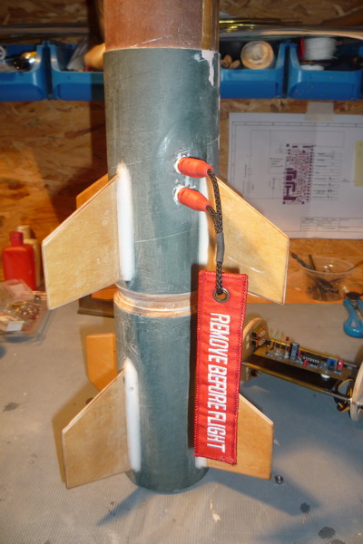 Außerdem wollte ich das schon immer: Einen "Remove Before Flight"-Anhänger an meiner Rakete.... cooool.