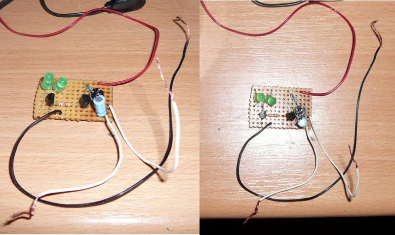 Einmal den Transistor und einmal den NE555. Der NE555 ist ein bischen schwerer. Verbraucht auch mehr Saft. Die Zeit lässt sich genauso gut /schlecht bei beiden einstellen jedoch kann ich den NE555 nur bis 16 sec einstellen und den Transistor bis 30sec. (Gleicher Kondensator und Einstellpoti)
