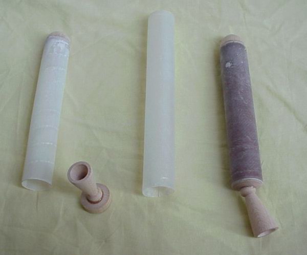 Hi all, da der erste Booster schon 55g wog, habe ich mich kurz entschlossen, keine laminierten Papprollen (Gemüsestand Supermarkt) mehr zu verwenden, sondern nur 2 Lagen GFK. Die Spitze und die Düse sind gedrechselt und so weit es möglich war ausgebohrt. Folgende Datei wurde angehängt: |