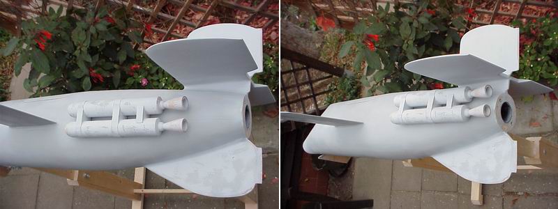 Hi Rolli-wie immer:   Klasse das Teil. Ich würde es auch so sehn wie Andi, ausserdem halte ich die Booster im Heck aerodynamisch für günstiger-sie wirken ja auch wie Flossen. Somit sollten sie helfen, den Druckpunkt nach hinten zu verschieben, meine ich? ________ Grüssle, Sly |