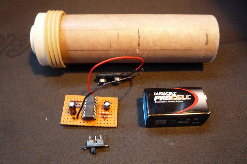 PML bietet ja eine Spitze, inkl. Payloadbay an, die "Intellicone" Sowas ähnliches brauche ich auch, immerhin kann ein Taxi ja auch etwas befördern. Also hab ich in das untere Ende einer normalen 4" PML Kunststoffspitze ein fettes Loch gedremelt. Aus meinem Quasar-Bausatz habe ich die vom PML "KwikSwitch" übrig gebliebenen Resine Gewindeteile benutzt um eine universelle Halterung für eine Nutzlast zu haben. Das Gewindstück in der Spitze hat im Inneren der Spitze einen Kragen, der nur mit Trick durch das Lock ging. Da auf dem Material der Spitze kein Lack oder Kleber wirklich hält, besteht so nicht die Möglichkeit, das sich die eingeschraubte Last während der Schubphase löst und in der Fallschirmkammer herumvagabundiert. Mit dem modifizierten Gewindestück kann ich ein fast 30cm langes 38mm Rohr einfach einschrauben, bzw. easy gegen eine andere Payload wechseln, die ebenfalls ein solches Gewinde hat. In diesem Fall soll das ein extrem lautstarker Ortungspiepser sein. Der Piezo-Schallwandler paßt vorteilhafterweise exakt in das 38m Rohr. Kernstück der Schaltung ist ein CMOS 4011 Logikbaustein (NAND). Aktivierung erfolgt per PullPin wenn die Spitze abgetrennt wird, damit der nicht schon am Boden rumkrakeelt. Die Payload ist allerdings zum jetzigen Zeitpunkt noch nicht fertig, die Bilder zeigen den aktuellen Stand der Dinge.... Erstmalig werde ich um einen vorzeitigen Austoß des Hauptschirmes zu vermeiden, ShearPins benutzen. Montage ist eine rechte Frickelei, aber ich hoffe das das alles so "sheart" wie ich das will. Geändert von Kabelmann am 25. Mai 2010 um 21:05 |