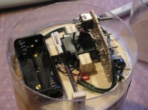 Also, in meiner Auslösung soll der Servo eine Schnur aufwickeln, die dann eine Stange, die erst aus der Rakete rausguckt, reinzieht. Über diese ist die Schnur/Gummi gespannt, das die Klapper verriegelt.