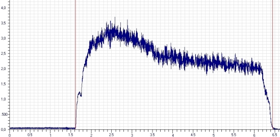 Bei der Berechnung der Brennkammergröße eines Hybriden würde ich auf Erfahrungswerte zurückgreifen. Es ist zwar sehr einfach möglich über Abbrandrate und - geschwindigkeit, sowie Dichte des Brennstoffs und dessen Massenfluss die Länge des Brennstoffblocks zu berechnen. Allerdings nützt das nicht sehr viel, so lange man die Abbrandoberfläche nicht konstant halten kann und das ist beim Hybriden sehr schwer bis fast unmöglich. Deswegen (und wegen dem abnehmenden Druck im Tank) ändert sich das Brennstoff-Sauerstoff-Verhältnis (O/F) während des gesamten Abbrands. Bei konstantem Oxidator-Fluss kommen dann bei zwei verschiedenen Treibstoffen sollche Schubkurven zustande: Insgesamt spielen einfach zu viele Faktoren eine Rolle, als das man alle beachten könnte. MfG Roman 'Technisch gesehen hat alles funktioniert!' -Ich (oft kopiert) |