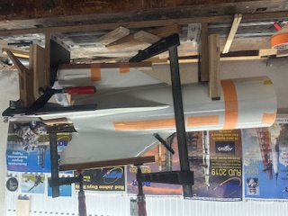 Sodele, nach langem Winterschlaf, Schaffenspause, Altbausanierung...., und ja noch dazu Opa geworden gehts weiter mit der A4. Vielen Dank an alle für die Glückwünsche, Kommentare und Meinungen zum Bau der A4. Zwischenzeitlich fand dazu eine Hochzeit statt: Booster und Innenrohr mit allen AL-Spanten und der MM sind zusammen verleimt. Flosse 1 -3 sins auch am Booster. Morgen kommt noch Flosse 4 daran. Verleimt hab ich die Flossen mit einem Montagekleber.