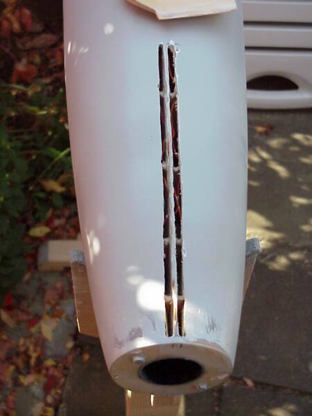 nachdem der "Flügel" mit reichlich Epoxy im Nut eingeleimt wurde, ist in bekannter Manier mit Tape abgeklebt worden und eine Naht ebenfalls mit Epoxy gezogen worden. Folgende Datei wurde angehängt: |